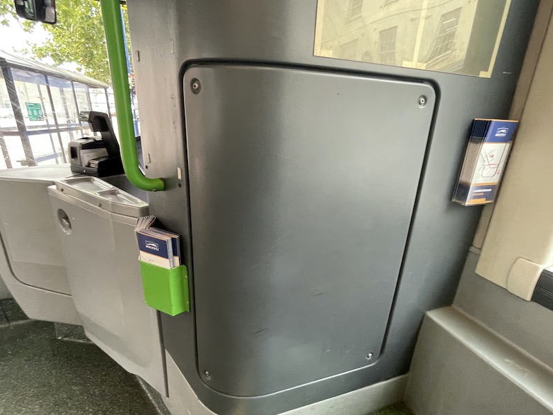 The buses have seat back usb, stop buttons and wire free mobile phone holders although I noticed one has already snapped off.