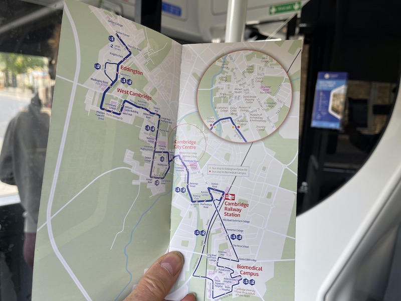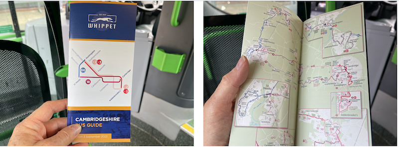 Impressive of all during my route sampling was finding the company’s Cambridgeshire timetable book, complete with network map, available to pick up from dispensers on board buses.