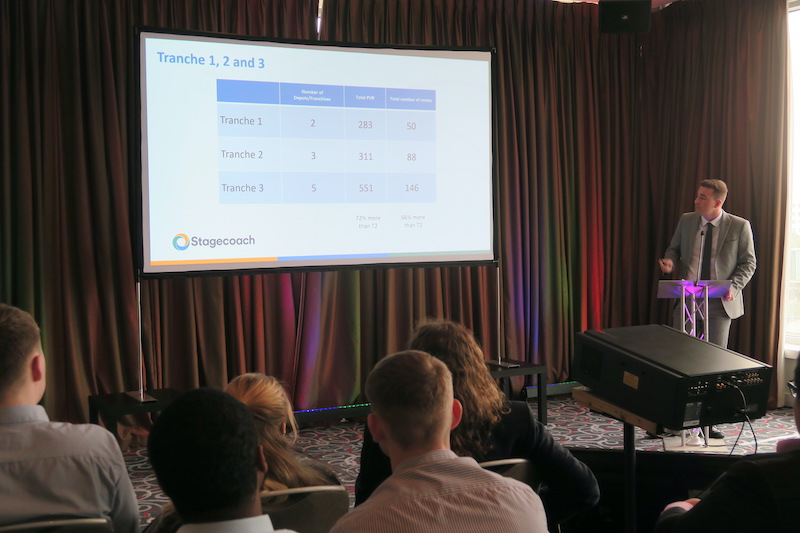 Zach McAskill, Head of Franchise Mobilisation at Stagecoach Manchester (and a young bus manager himself) spoke next and gave a fascinating insight into how bids are put together before submission and the work that went into mobilising the 17 school contracts with a 46 PVR Stagecoach won in tranche one, not least the challenge of not having an operating location in the area where these contracts operate.