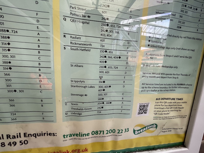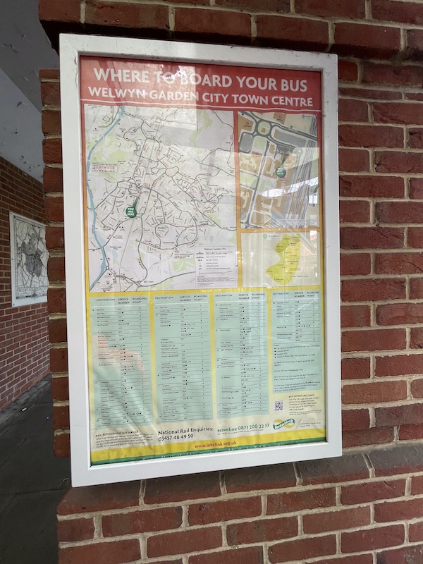 The Where To Board Your Bus Poster in Welwyn Garden City hadn’t been updated and at the time of writing Hertfordshire’s online maps for Stevenage and Welwyn Garden City haven’t been updated.