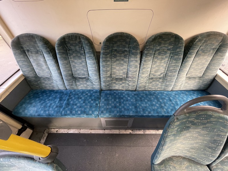 The bus I caught on Monday was a 15 year old Arriva Optare Versa with the usual mixed moquette giving away its age.