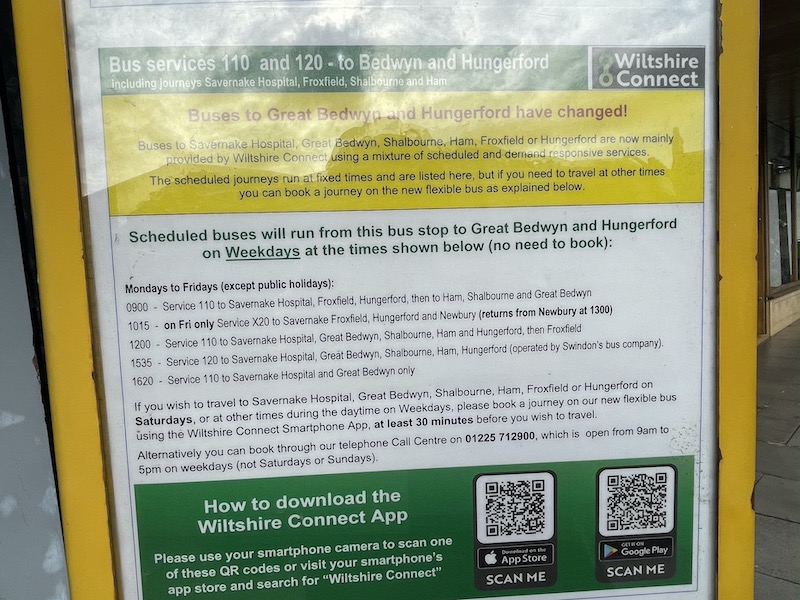 As I’d found when trying out the original route 100 from Pewsey to Devizes there were posters promoting the new service in Hungerford…