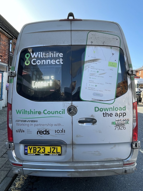 When I wrote about Wiltshire Council’s launch of Wiltshire Connect three months ago I mentioned the Council would be expanding the geographic area covered by its semi-flex DRT scheme in two more phases; in September and at the end of October. Sure enough the full operation is now up and running so I popped over to Marlborough last Thursday to try out one of the new services.