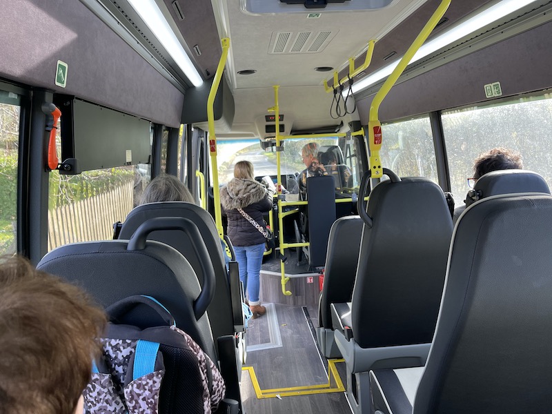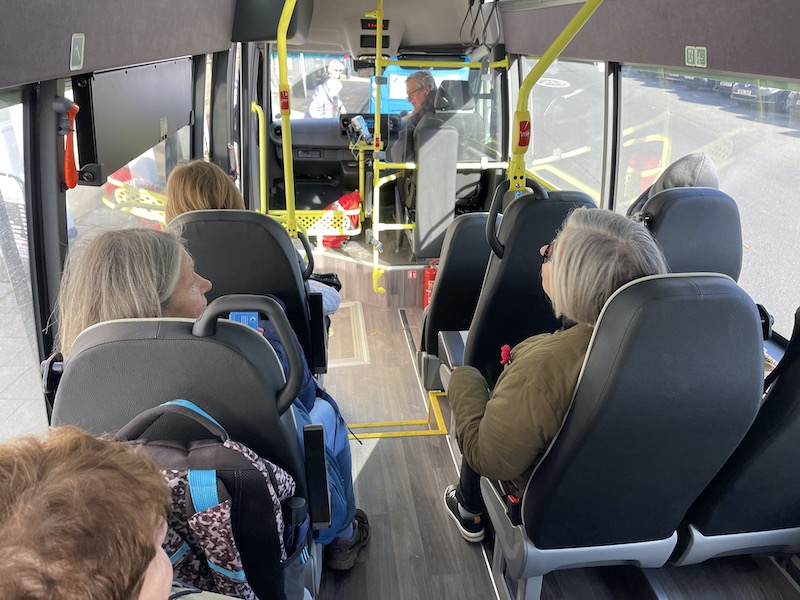 The bus pulled up at the bus stop outside Lloyds Bank in the delightful Marlborough High Street – only spoilt by all the parked cars in the middle of the road – and six passengers boarded. I was the only one who’d booked and the driver greeted me by name as he’d seen my booking on his ‘manifest’.