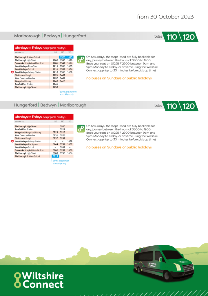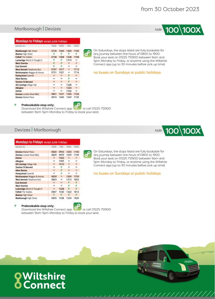 The link from Marlborough to Devizes, introduced from 4th September, is a new one and revolves around a semi-flexible timetable for new routes 100/100X on Mondays to Fridays and complete flexibility on Saturdays …