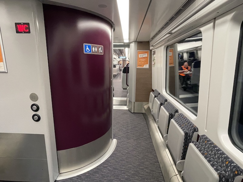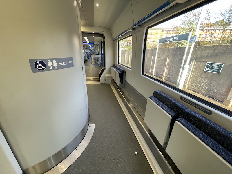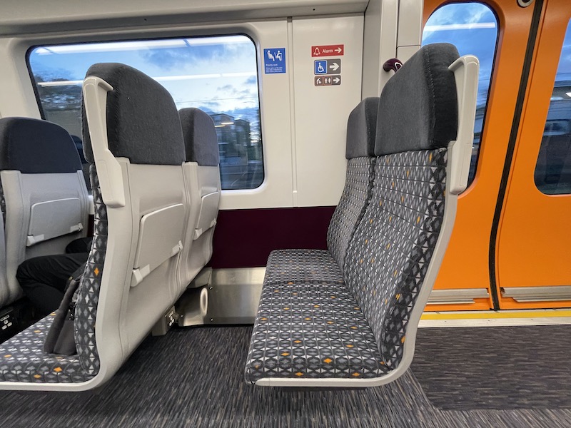 One feature I’ve noticed on other trains manufactured by Alstom (formerly Bombardier) and also to be found on Greater Anglia’s Class 720s is the inclusion of fold down seats opposite the toilet door making it impossible for other passengers to walk past when in use.