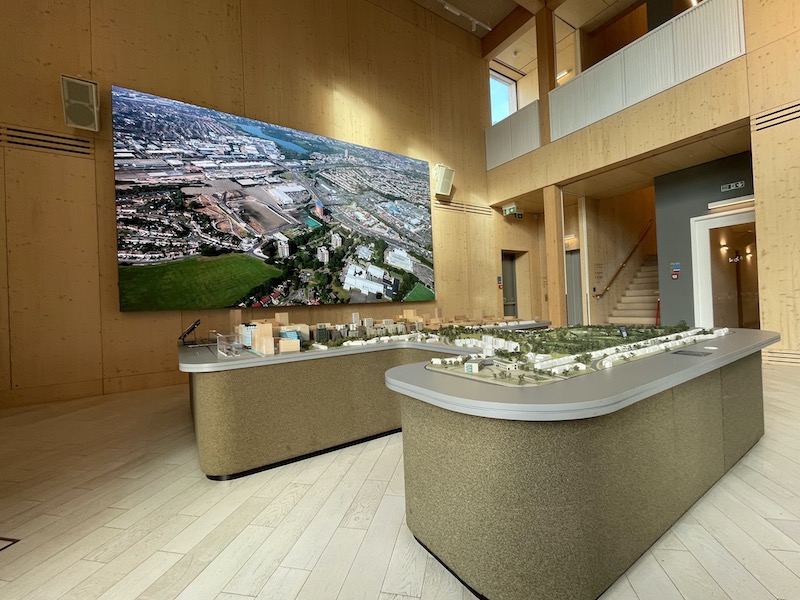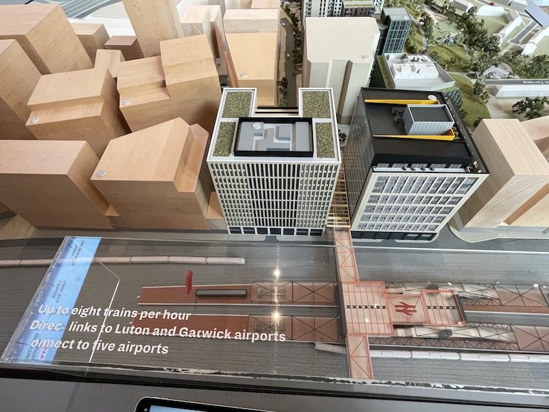 I took a look inside the nicely appointed Visitor Pavilion when visiting the new station on Monday with its impressive 3D model of the ‘New Town’ (which lights up from a tablet to show different elements of the scheme) alongside a huge screen showing impressive computer generated images of how wonderful it’s all going to be.