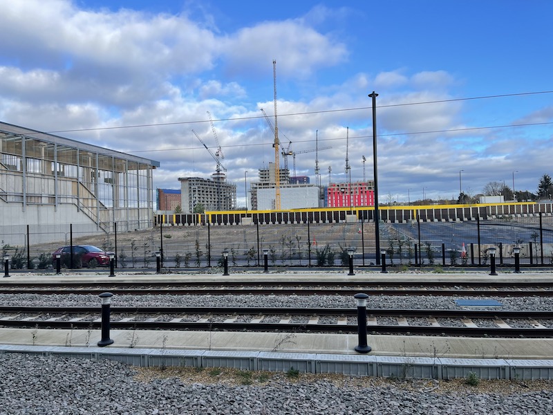 Just like Barking Riverside and Meridian Water it’s good to see transport infrastructure going in even before the first block of flats has been completed. All of this lies to the eastern side of the new station where the entrance has been built…