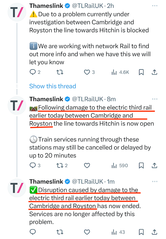 And while I’m in Thameslink highlighting mode, can someone let their social media team know the difference between third rail power supply south of the Thames and overhead wires north. It doesn’t give you confidence in their other explanations about delays.