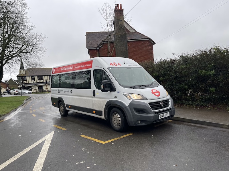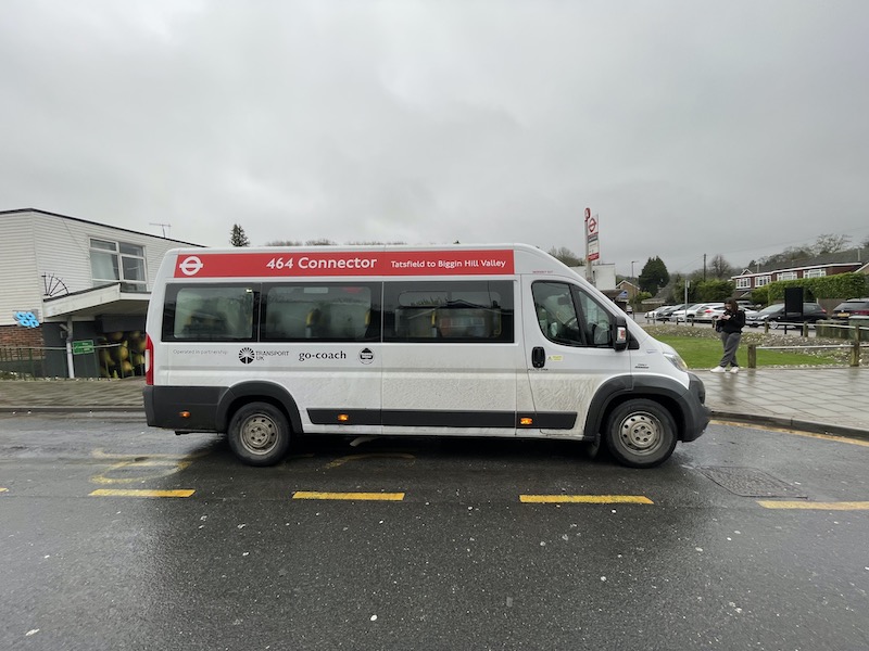 The 464 Connector is being run by Swanley based Go Coach Hire, famous for running bus routes in the Sevenoaks area, many school contracts in west Kent and the go2 DRT taxi operation. It’s a sub-contract from Transport UK (formerly known as Abellio) on behalf of TfL.