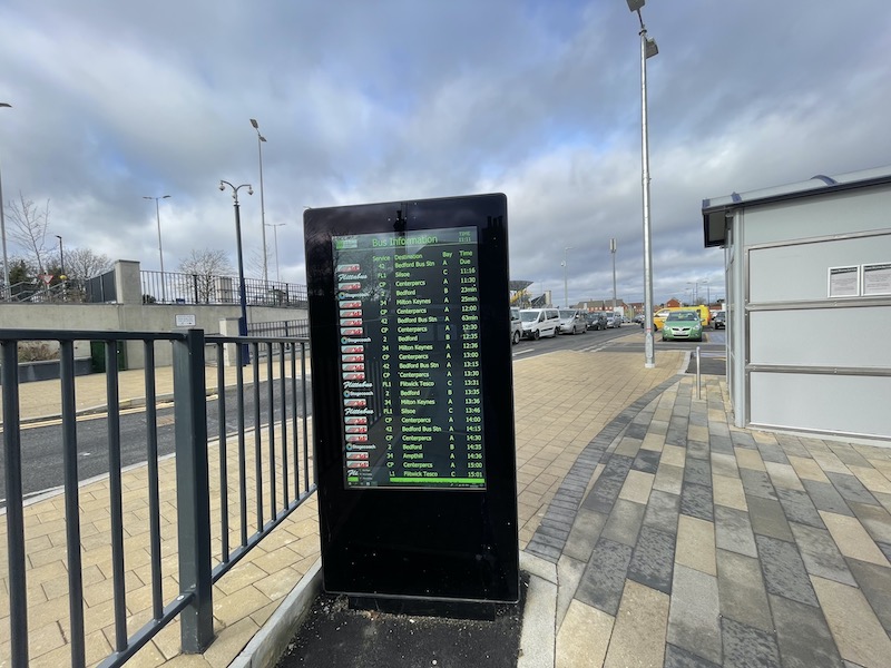 … and another as you approach the Transport Interchange, although sadly they don’t show departures from the High Street and Kings Road.
