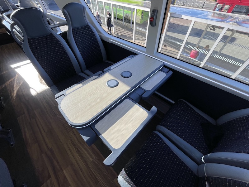 On the upper deck there’s one table for four on the offside just after the stairs…