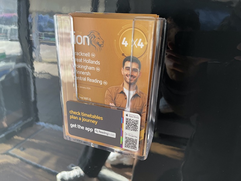 … and there’s a timetable leaflet holder which, as you’d expect with Reading Buses, was full.
