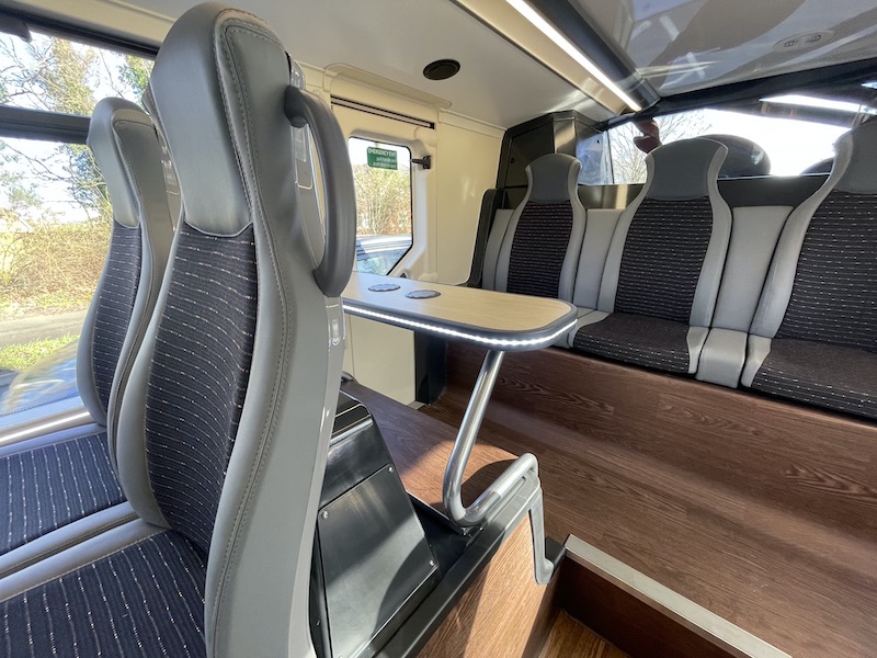 … with the ‘over the rear wheels’ area devoted to two nicely placed tables …