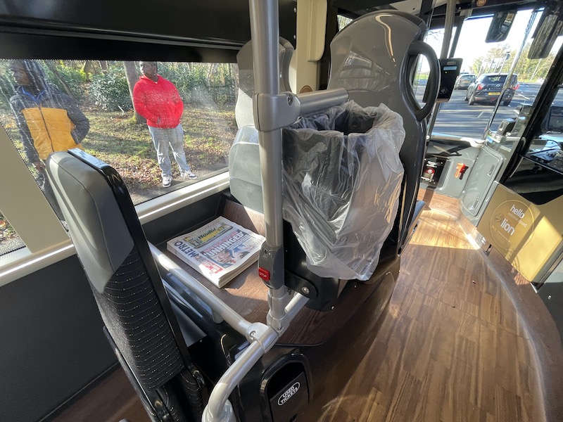 For the driver the specification includes camera mirrors, reverse parking sensors, improved CCTV and audio recording in the entrance area for added security, a fan to supplement the cab air conditioning and a microphone to help provide any additional ad-hoc journey information for passengers.
