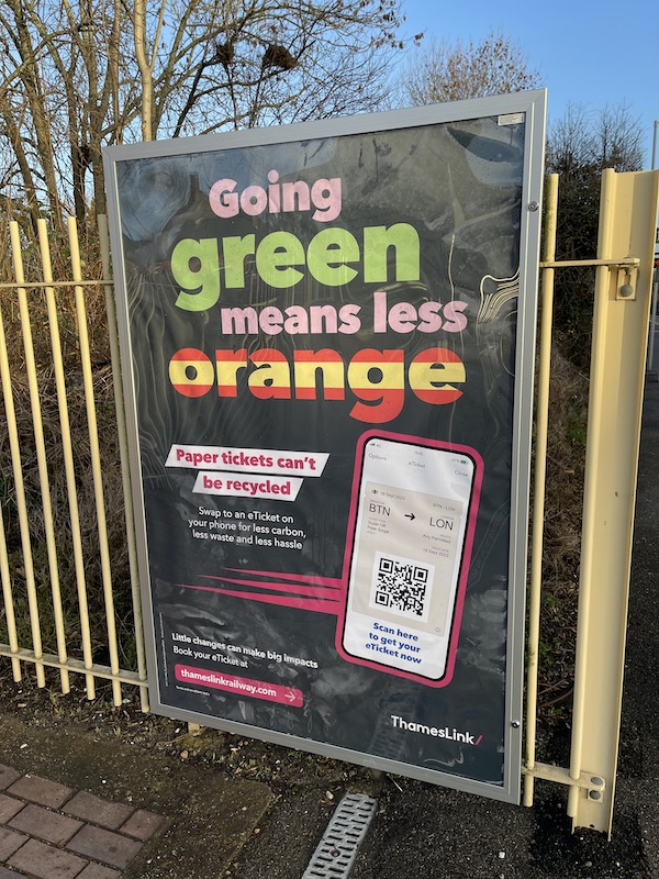 I do my bit for the environment with my fortnightly bin collection for landfill almost negligible these days. I even take all those plastic wrappings and bags that come as packaging to the supermarket recycling point, but until I saw the above poster at Hassocks station recently I had no idea orange paper rail tickets can’t be recycled. However, I always keep my tickets as a record of my journeys and much prefer that to a digital version and frankly with the state the world is in right now, I really don’t think it’s going to make a huge difference to the future of the planet if people do or don’t use orange tickets for their train journey.