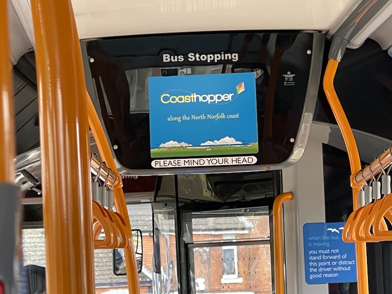 … as well as the slightly less reassuring information we were hopping along the North Norfolk coast. Stagecoach withdrew from Coasthopper in 2018.