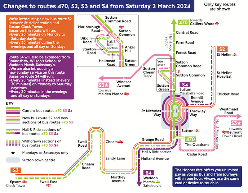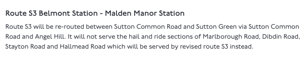 And if all that lot doesn’t confuse you then one other change (included on the ‘inset’ on the map shown earlier) involves routes S3 and 470 swapping routes between Sutton Common Road and Sutton Green…