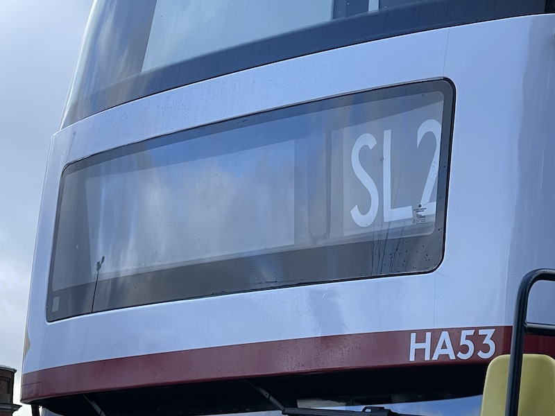 One point to note about the SL2 is that its introduction appears to have been brought forward a week, at short notice (LOTS newsletter lists it as starting on 9th March). Could that explain buses without vinyls and full blinds on the first day? Would it have been better to wait another week? Debatable, I guess. No doubt there is a reason for introducing it a week earlier than previously planned.