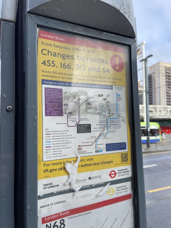 Meanwhile over in Croydon and Sutton, as explained, most of yesterday’s changes had been consulted on back in October, November and December 2020 with an update on intentions to go ahead published in September 2021. It’s quite incredible how long such things take to implement in a contracted, regulated environment. Many reasons to make changes to bus routes in a dynamic and changing world could well have changed again in the three and a half years and more since the plans were first formulated.