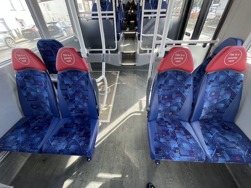 … with new red headrests to indicate priority seating and improved next stop displays.