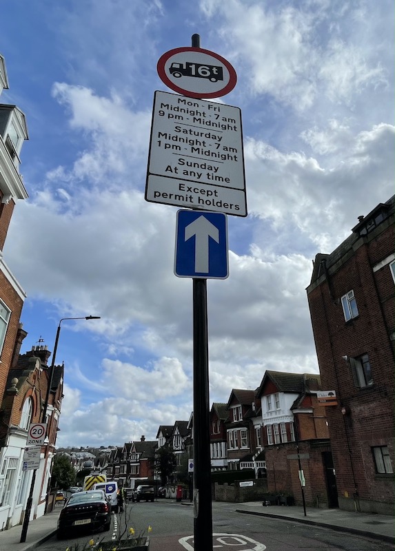There are no restrictions for other traffic either entering (or exiting) at any time. That’s because restrictions within the LTN itself forbid through traffic and there are full entry and exit restrictions on the other boundary road (Leigham Court Road) along the eastern side as shown on the earlier map.