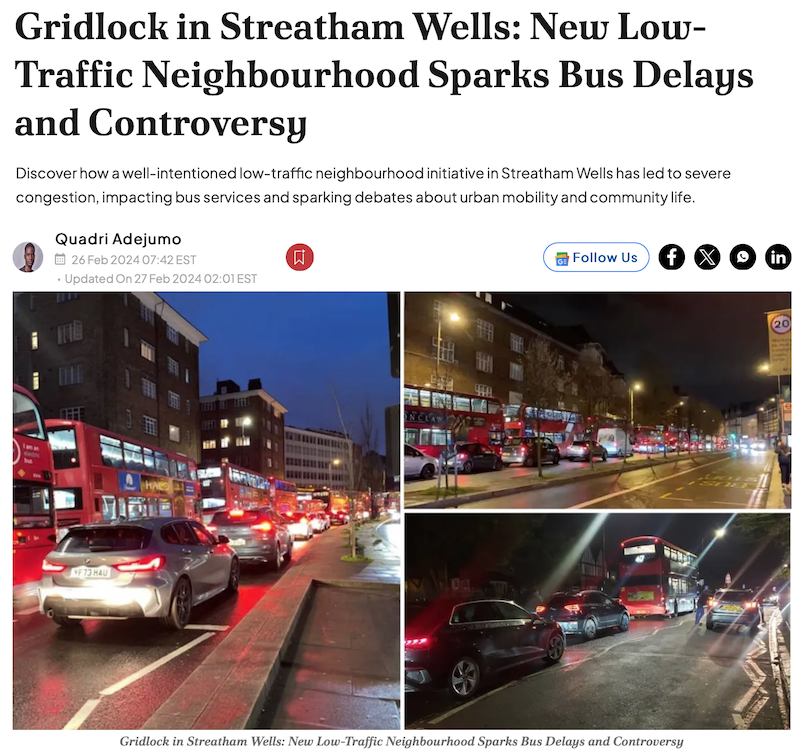 Streatham High Road has long been prone to traffic delays. I recall an occasion driving a rail replacement bus one Saturday, leaving Tulse Hill spot on time and arriving at the next station, Streatham, nearly an hour late. The reason? Streatham High Road was at a standstill. Was the LTN in force? No, this was around 15 years ago!