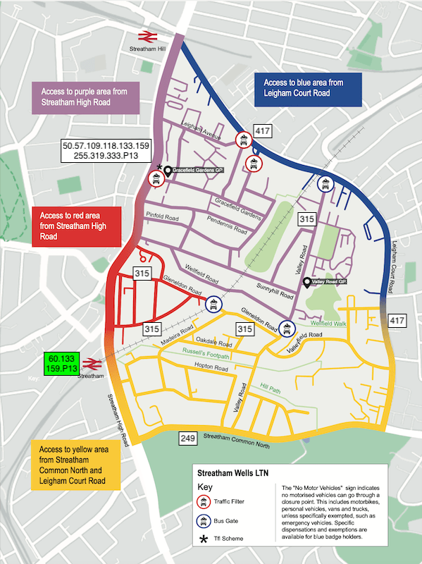 It does seem a strange idea to funnel all the traffic from the LTN’s red and purple zones onto the already-at-capacity Streatham High Road. It would be interesting to see the impact if access and egress was switched to Leigham Court Road instead of Streatham High Road, where the planters and £130 fine signs could be installed instead.