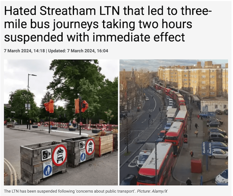 Good article on LTNs and the policy reasons behind them. As the article says not all schemes are successful but the majority are. I think this particular one didn’t adequately consider the implications on the boundary roads, and the effects on bus services. It shows a lack of joined up thinking, as you can’t disregard public transport from policies designed to reduce car use.