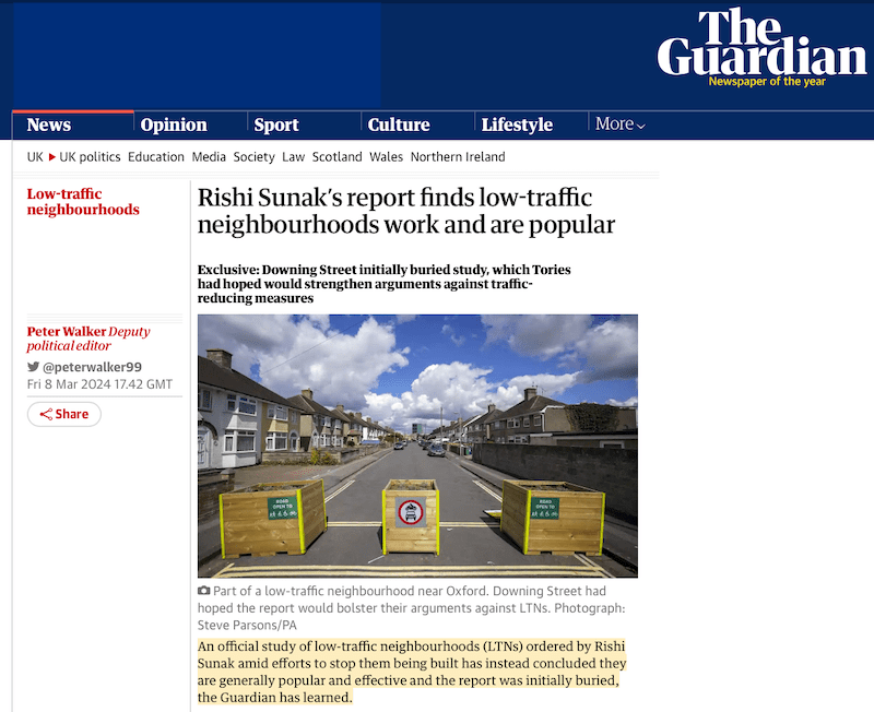 https://www.theguardian.com/uk-news/2024/mar/08/low-traffic-neighbourhoods-generally-popular-report-ordered-by-sunak-finds