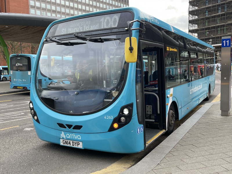 The eighth route 100 to be featured in this fortnightly series must rank as one of the quirkiest. It’s Arriva’s second of that Company’s two routes numbered 100 but unlike its busy Stevenage to Luton route already featured, and certainly unlike the lengthy Manchester to Warrington featured last time, this 100 is just 2.3 miles in length and takes only eight or nine minutes (depending on direction) to get from one end to the other making it the shortest of all 26 routes across the Country numbered 100 in both mileage and journey time.