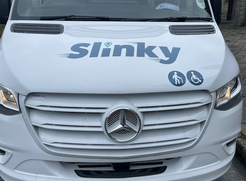 Somerset Council has been operating Dial-A-Ride services branded as Slinky for some time. To be eligible to use the services passengers must register as a member and not have access to public bus services, or not have their own transport, or have a disability meaning they’re unable to access a public bus (it’s not clear from the online information whether you have to satisfy all three criteria or just one of the three to be an eligible user). Journey bookings must be made 24 hours before travel with fares costing £2.50 or £3.50 depending on whether the distance is up to (or over) three miles with return prices of £4 and £5. Concessions and children 5-16 travel for half fare rounded up to £1.30 and £1.80.