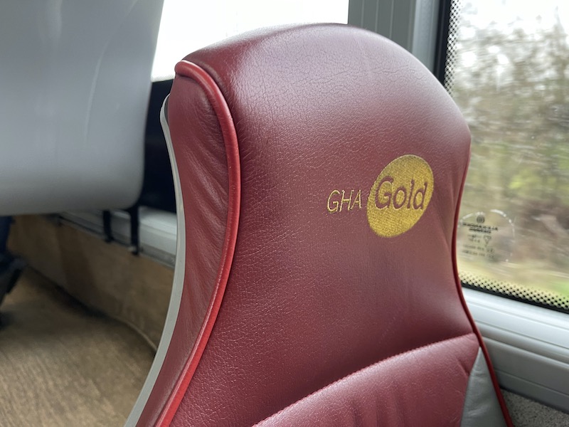 The bus was a former GHA Enviro200 with the branded seats being a bit of a giveaway of its past history. While perfectly comfortable to travel in I don’t particularly like the seat layout with the rearward facing seats in prime position in the raised section where it’s always nice to sit and enjoy a forward facing view of the road ahead.