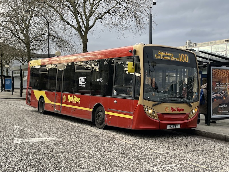 Time for another exploration of one of Britain’s 26 bus routes numbered 100. And this time I’m back in the Home Counties taking a ride on Red Rose Travel’s route between Aylesbury and Milton Keynes.