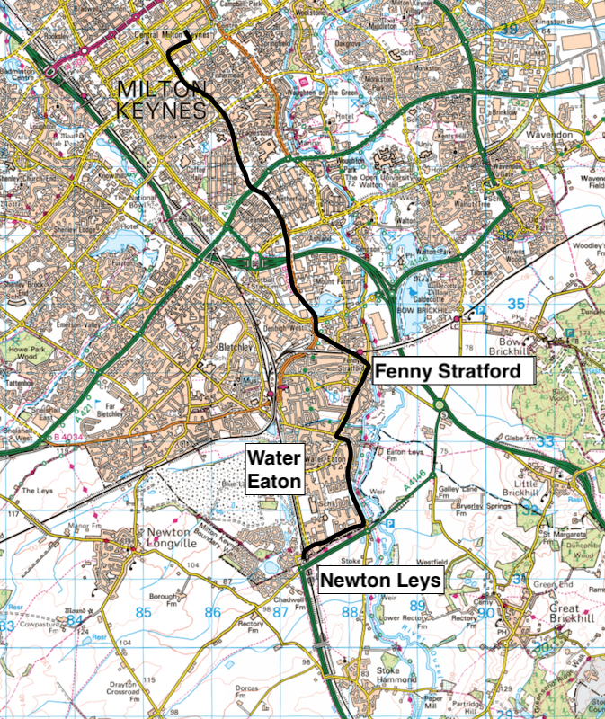 From Newton Leys and Water Eaton the bus passes through Fenny Stratford, avoiding the centre of Bletchley, continuing north to reach Milton Keynes terminating at “The Point” which is the main bus stop by the town’s huge Midsummer Place shopping mall.