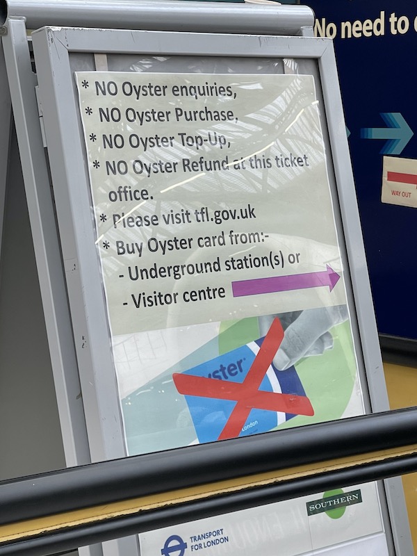 3. So much money being wasted. Touch screen displays which no one uses so they just repeat the info on the big screen. Insane numbers of ATO gates. TVMs installed which then aren’t switched in (meanwhile Paddington has recently lost half it’s previous 8). Newly installed info points ten yards from closed ticket office windows. And that’s before we get to stuff like three different brands of trains running between London and Gatwick, each with their own web sites, fare structures and ticketing systems.