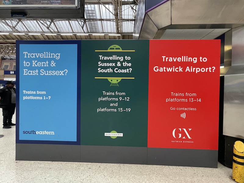 18. That poster suggesting that SE trains to “Kent and East Sussex” depart from platforms 1-7 is surely wrong. SE’s only forays into East Sussex run from Charing Cross and Cannon Street.