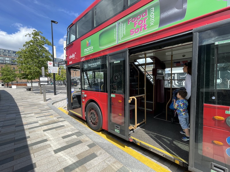 … where I alighted and then walked a short way along Battersea Park Road and turned left into Pump House Lane where there’s an official bus stand. I got there a minute or so after the bus had pulled up…