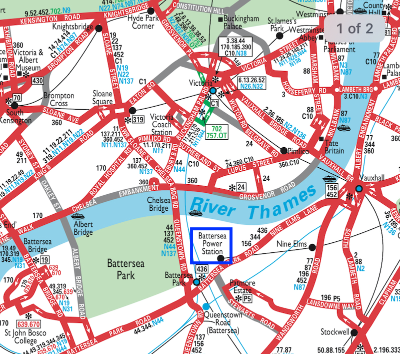 … and where Battersea Park Station sits above terminating buses on route 436….
