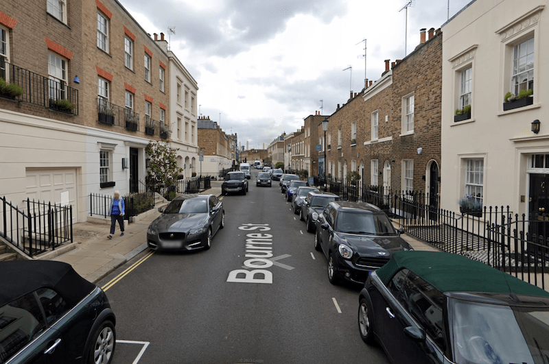… and Lower Sloane Street (south of the Square) one-way southbound.