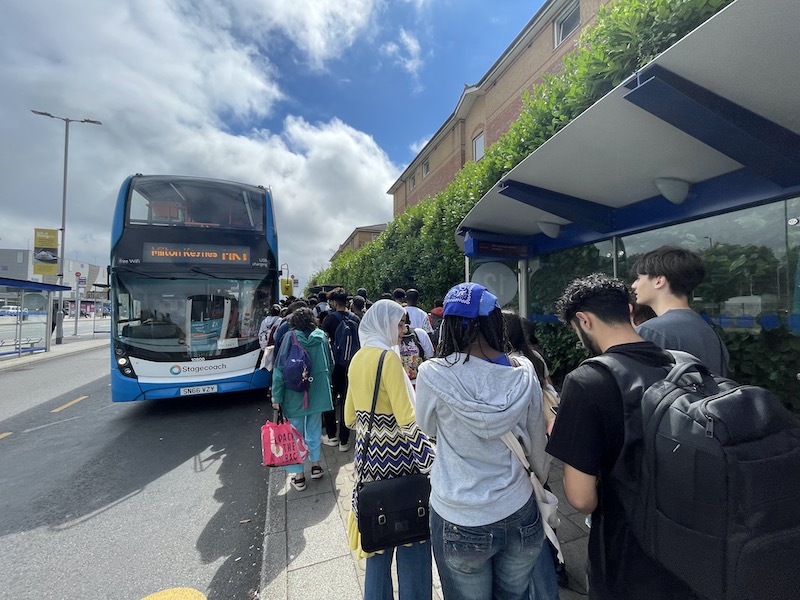 … which now enjoys a decent bus service rather than a very restricted offering, two young lads who’d also seen information posted at the bus stop on Sunday were excited to give the route a try and even more impressed to hear the fare to Milton Keynes was just £2 compared to £15 they’d been shelling out for taxis.
