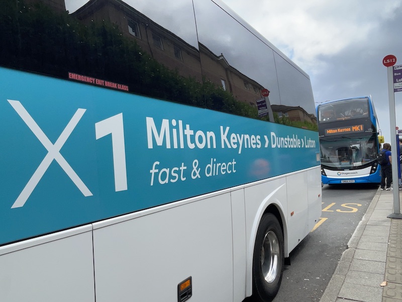 But much more significantly, Arriva has introduced a brand new hourly Monday to Saturday route numbered X1 between Milton Keynes and Luton running direct via the A5 and Dunstable which competes with Stagecoach’s MK1 via the M1.