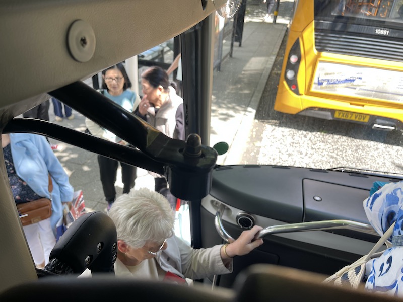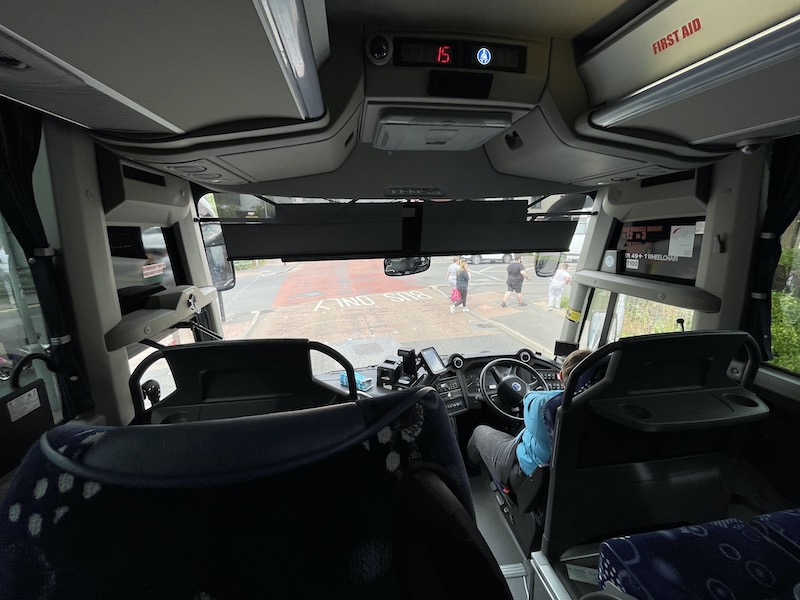 But… the coaches may meet a mixed passenger reaction – some on board yesterday thought it was the height of luxury and loved the idea while others struggled to board up the stairs and, of course, access for wheelchairs will delay things due to the need for the lift to be deployed rather than the slickness of a low floor bus.