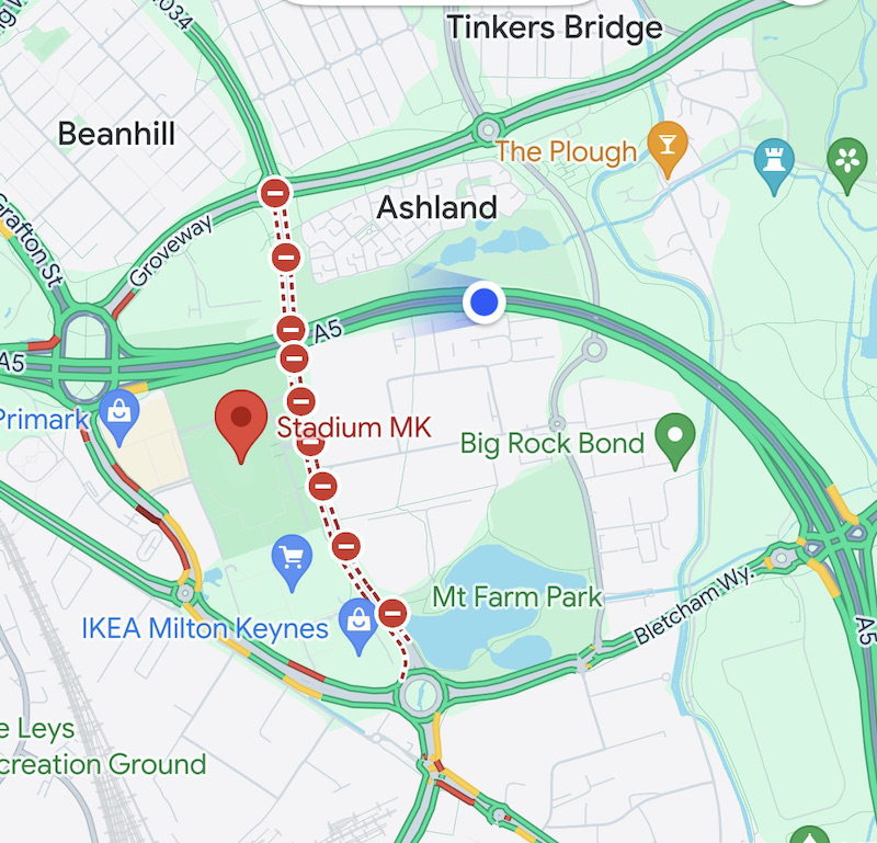 A road closure by the MK Stadium necessitated a minor route diversion via the A5 and Groveway…