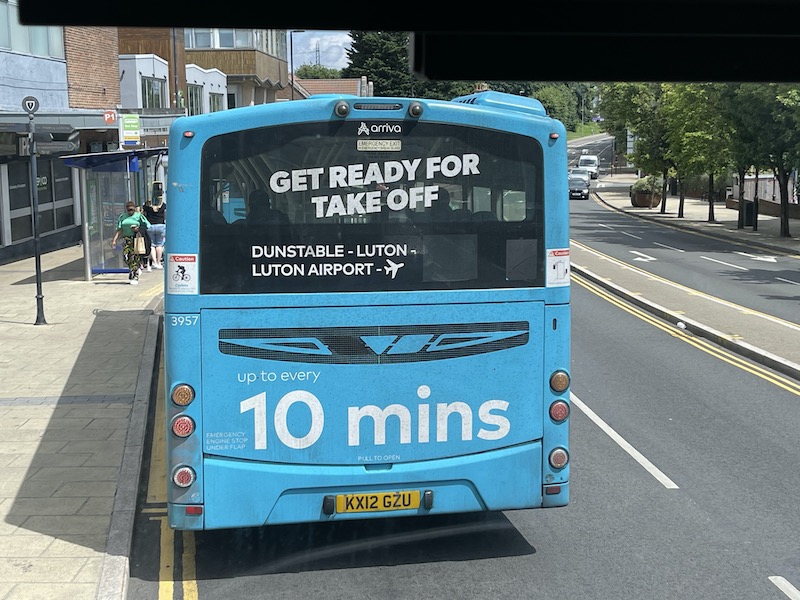 Not only has Arriva restored the frequency of route 100/101 from three buses an hour back up to four an hour, it’s also been rerouted, including a new circular ending to the route from Luton Interchange via Wigmore to the airport and then returning direct whereas before it served Wigmore and the airport prior to the Interchange.