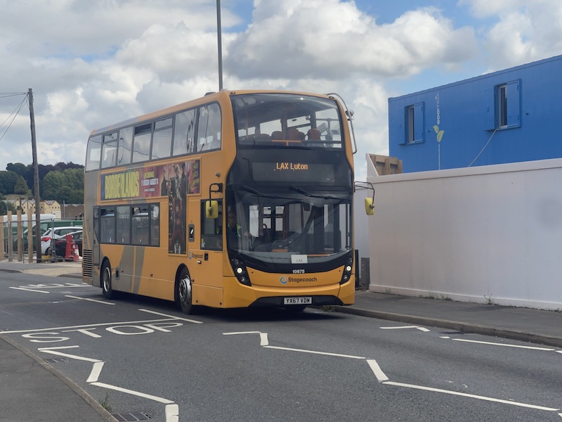 Understandably the company is sensitive about others encroaching on this market, so there must have been some consternation when Stagecoach added to its MK1 with the introduction of another route between the town centre and airport via Wigmore. It’s a new hourly shuttle route introduced on 24th June, denoted by the route ‘number’ LAX, now making for three buses an hour including the two on the MK1. I’m not sure why Stagecoach have chosen to muscle in on this market – when I saw the bus yesterday it wasn’t carrying any passengers and must be inefficient to operate from a Bedford base.