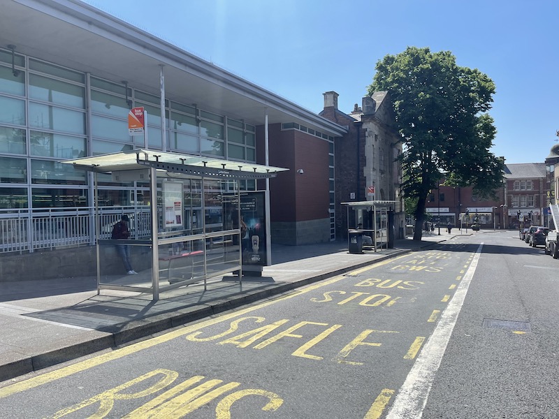 I arrived in the centre of Barry ready to catch the first journey from what’s affectionately called Barry Town Centre 3. There’s no number 100 on the bus stop plate, nor a timetable in the display case which isn’t particularly reassuring but there is an electronic departure sign showing scheduled departures (not real time) which at least did mention the upcoming departure at 11:52.