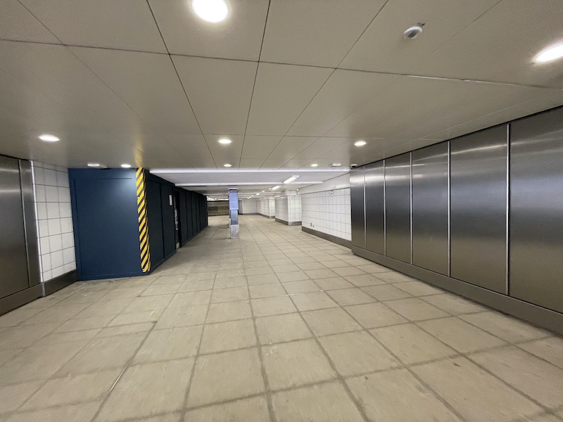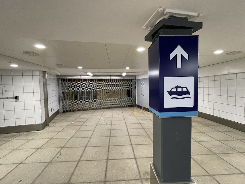 The passageway is now much more deserted with more trains using the through platforms. Oddly, despite the sign indicating it’s the way to River Boats, another passageway leads to a dead end…