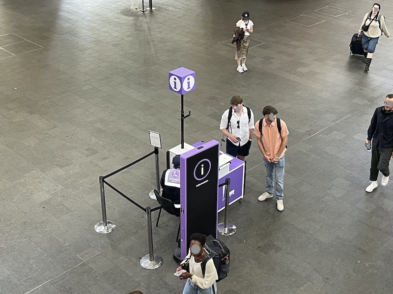 Through the barriers there’s a small information point and more retail units…