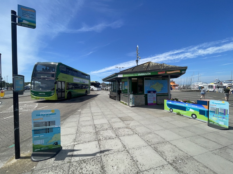 You can’t miss the promotional mesages for Southern Vectis at major interchange points on the Island, particularly Newport, Ryde and Yarmough.